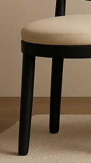 The AZAMA Chair is born from the same philosophy that defines the collection: softness, balance, and quiet strength. Inspired by the warmth of natural materials and the harmony of circular forms, this piece invites stillness into contemporary interiors.