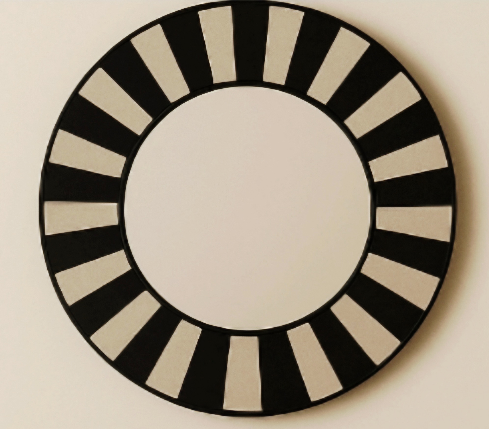 Le Miroir Azama est une fusion saisissante entre modernisme graphique et héritage marocain. Défini par son motif solaire signature noir et beige, cette pièce finie à la main agit comme un rayonnement sculptural, apportant lumière et audace contemporaine à chaque mur qu’il habille.